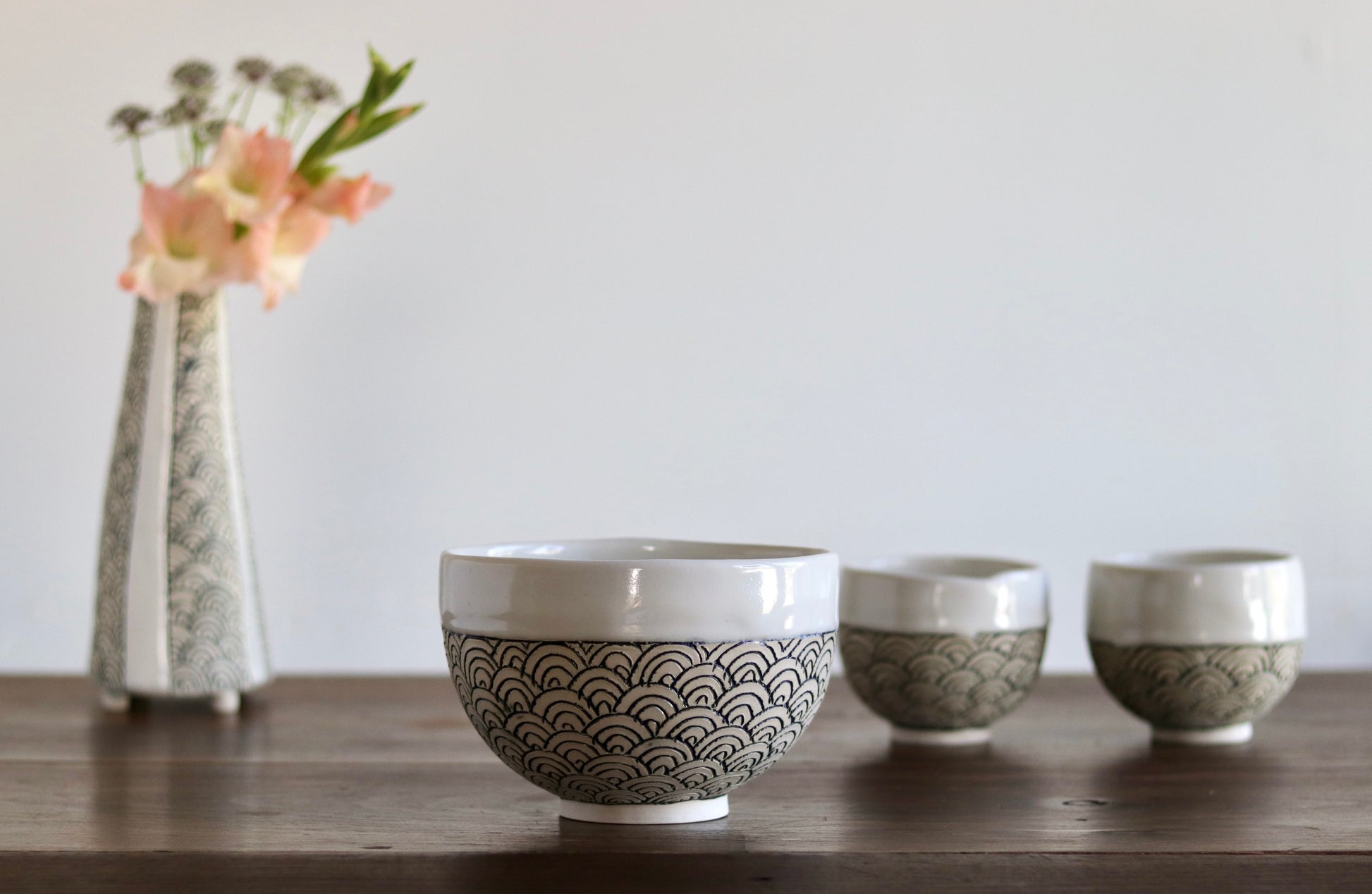 Bowls begin life with a slab of wet clay to create the basic roundness of the piece and then continue on using coils. My bowls make great soup and noodle ware at any time of year.