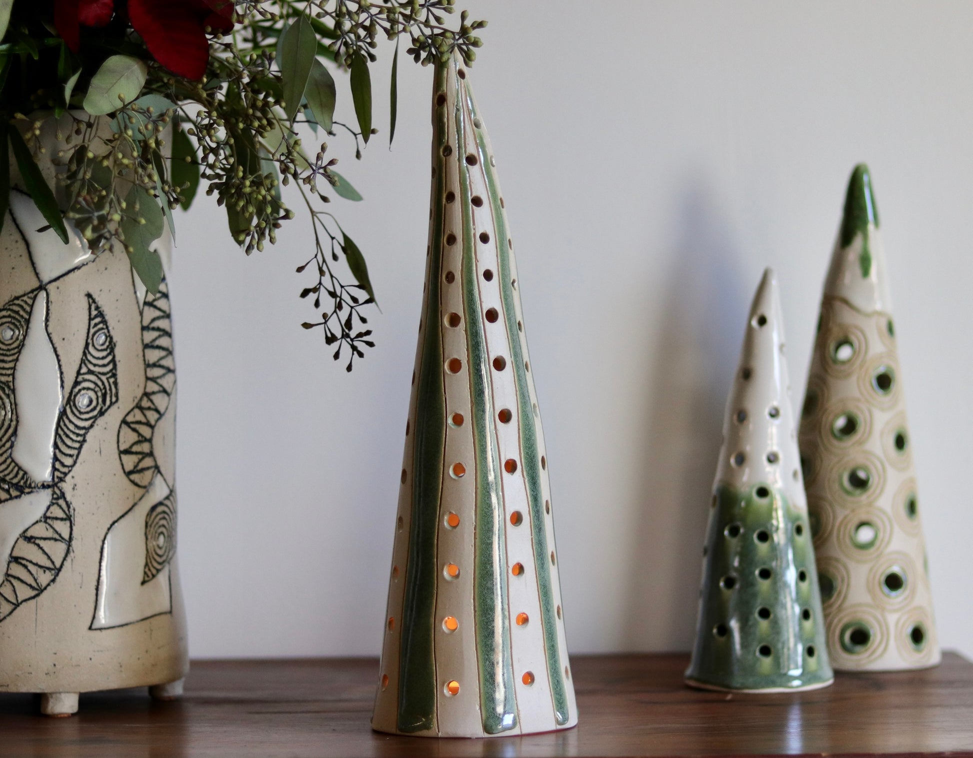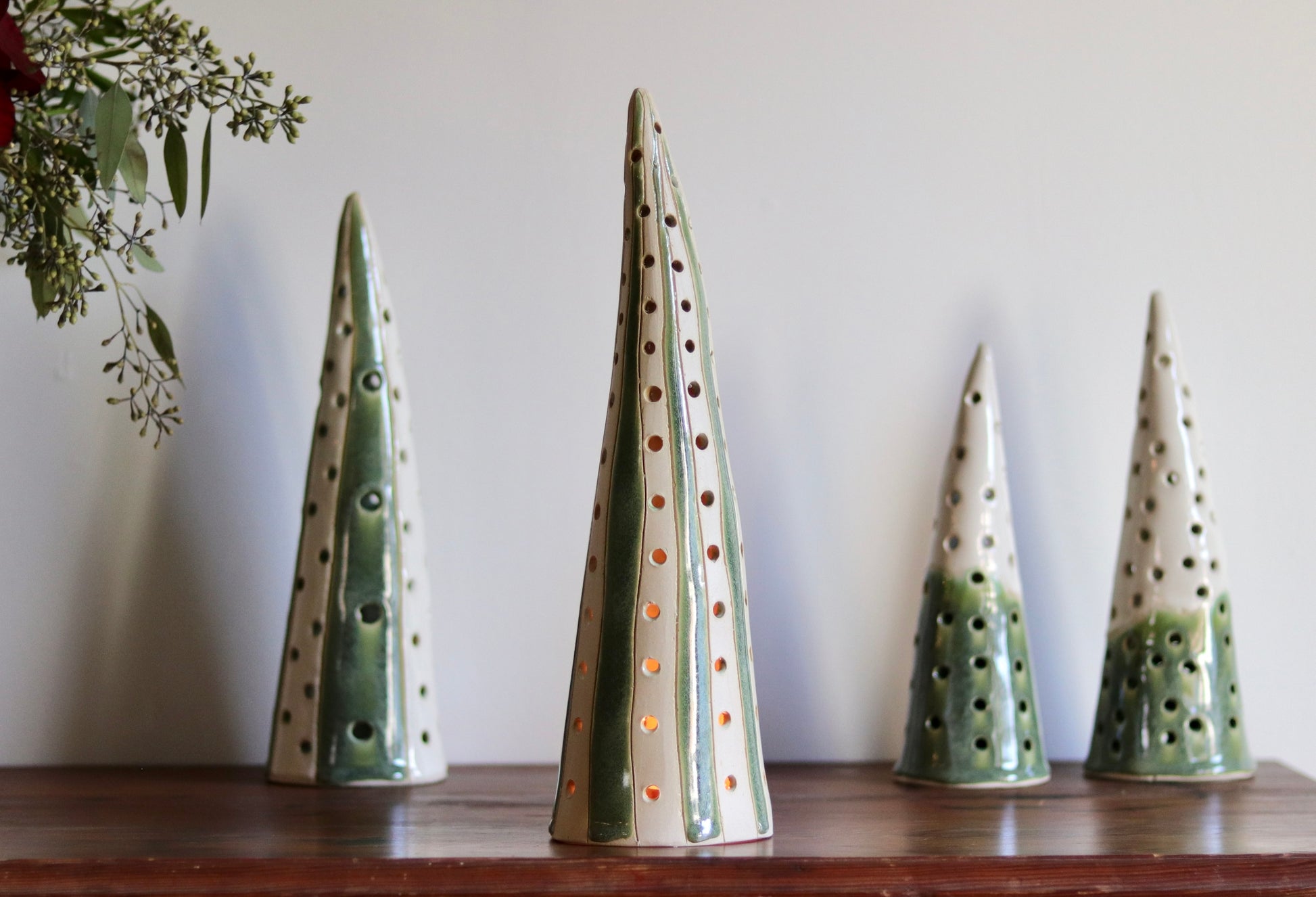 The tree lantern house has been fired at high temperature and can easily withstand the heat of the candle. It is also safe to be placed outside if you prefer to watch it shine and glimmer in the snow.